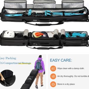 Easy Carrying & Separate Storage: Inside this wheeled ski bag, Items stored in separate compartments are less likely to come into contact with each other. When not on your trip, the padded ski bag easily folds down into a compact, space-saving form, making storage in a closet or car trunk incredibly convenient