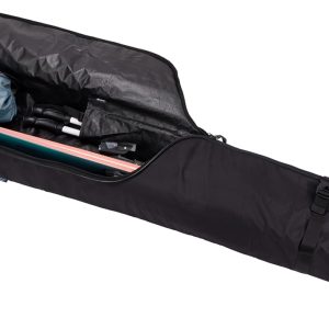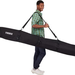 When you’re off to the slopes, Thule ski and snowboard bags give you more protection and make it easier to get there. The Thule RoundTrip Ski Bag is designed to store and transport a single pair of alpine skis or two pairs of Nordic skis and poles in the dedicated pole compartment. Stowing and retrieving your belongings are made simpler by the S-shaped zipper that wraps around the bag. This ski bag has a removable padded shoulder strap and multiple grab handles for a comfortable transport. The internal compression straps keep gear from shifting while in transport, and added cinch-top ski sleeves provide additional cargo space and protection. Deter theft with durable YKK zippers that are lockable (locks sold separately).